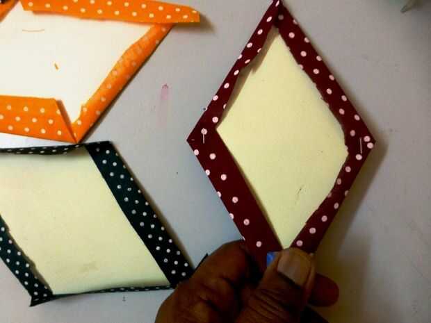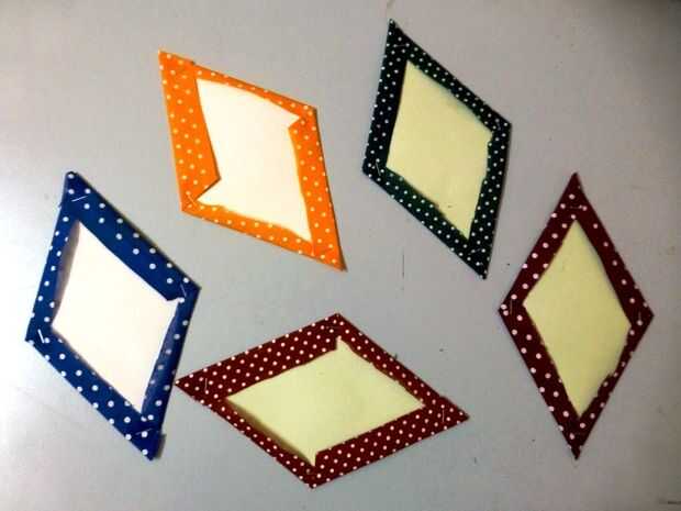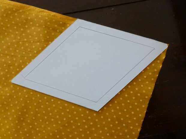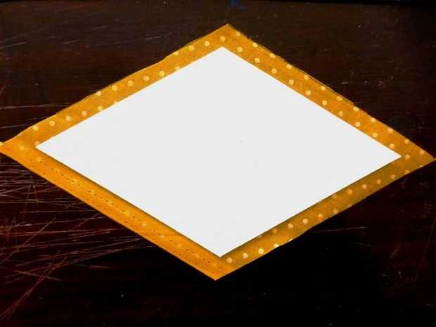 - Coloque un pedazo de papel en forma de diamante en el lado equivocado de la tela