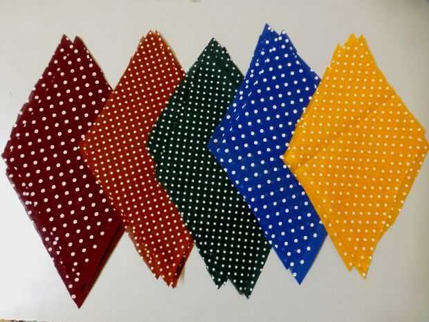 - Corte el número requerido de piezas de tela de diferentes colores. Puede utilizar tijeras o fresadores con tableros de corte