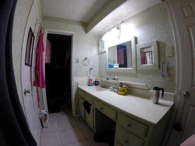 Tengo ganas de remodelar nuestro baño principal desde la primera compra de nuestra casa. El fondo de pantalla era horrible y aburrido. Sin embargo, estuve dos días tratando de sacar algún papel de frontera desde otra habitación, y pasé miedo intentar quitar papel pintado de una habitación entera. Cinco años más tarde, decidí que era tiempo. Había visto algunas habitaciones con paredes de madera sencilla y decidí que ya era perfecto. Haría la habitación más luz y diversión y tapa el fondo malo si era demasiado difícil de quitar.
