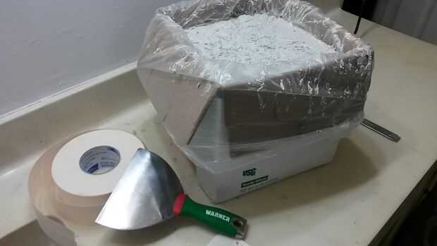 Compuesto para juntas (yo usé muy poco de este cuadro enorme, aunque sólo me costó $7. Déjeme saber si usted sabe cualquier maneras creativas de utilizar el exceso.)