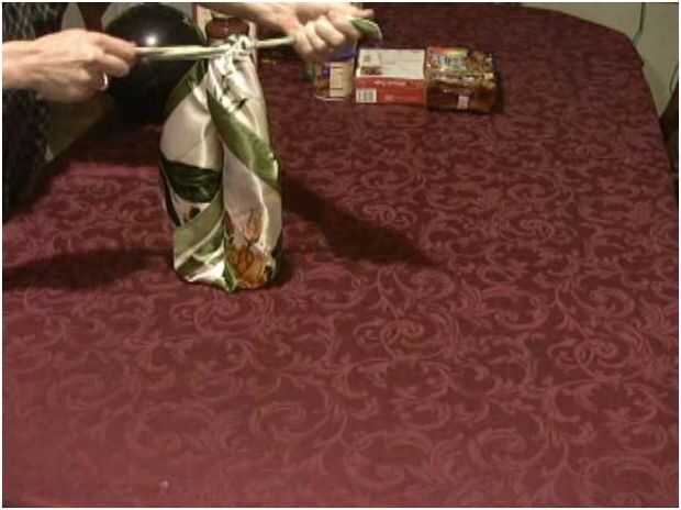 Aquí es un gran ejemplo de cómo puede envolver un par de botellas de vino. Se ve increíble y protege el vidrio rompa.