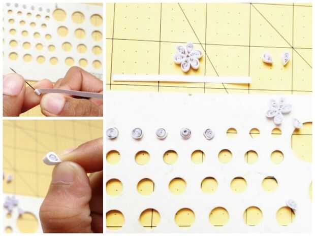 Corte de carga de 3" tiras de papel y comenzar a rodar libremente. Colocar en la plantilla y pegar los bordes de cierre. El sujetador de un lado para hacer una lágrima. Pegar 6 pétalos para hacer una flor.