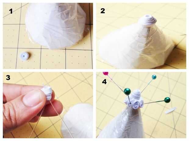 Extraiga lentamente el árbol del cono. Pegamento caliente algunas cuentas al centro de la flor.