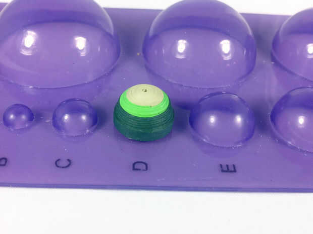 Presione la bobina sobre el molde de la bóveda más cercanos en tamaño a su bobina. Si no tienes el molde (o el dedo funcionará también), puede usar una canica.