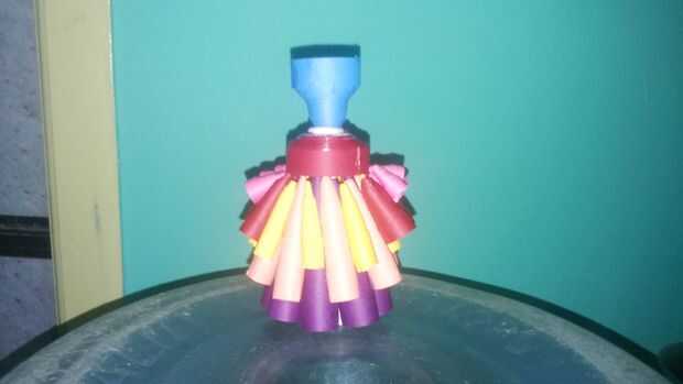 • Hacer una forma de cúpula que se indica para la cintura. Esto se puede hacer con 8 tiras de papel azul