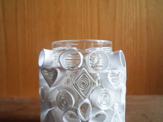 Hacen un total de 10 bobinas de anillo grande, luego pegar 2 de ellos encima de la bobina de diamante, como se aprecia en el cuadro 4. Hacer todo esto alrededor de la jarra con el resto de los anillos.