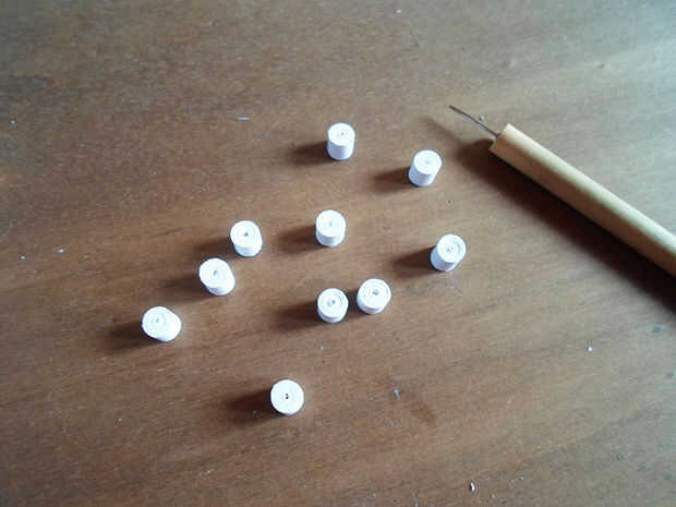 Hacer 10 regular nuevas bobinas firmemente y pegar dentro de las bobinas de anillo grande (uno para cada aro).
