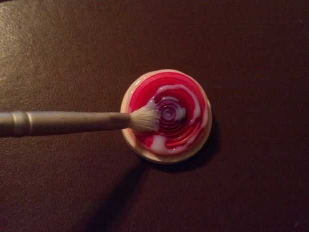 Aplicar una cantidad moderada de pegamento en el interior del molde y extender la cola uniformemente con un pincel pequeño o el dedo. Lo mismo hacia el exterior. Aplique una cantidad moderada de pegamento el exterior de la cúpula y distribuido uniformemente sobre la superficie con un pincel o el dedo. Espere a que el pegamento se seque y repita este paso. Esto le dará estabilidad a la forma.