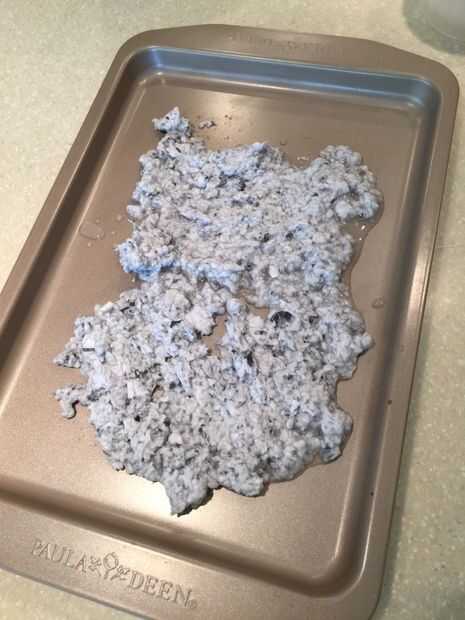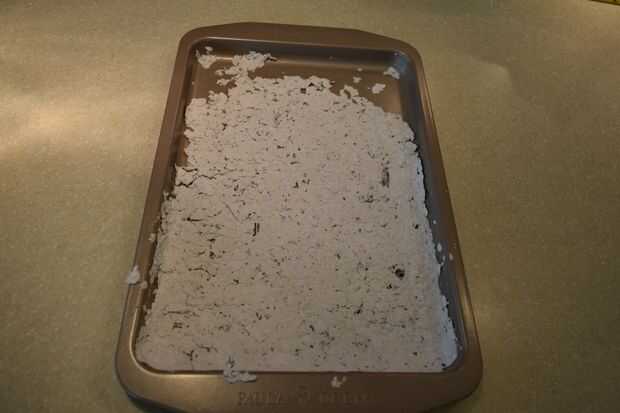 sacar el pegote de papel sobre la hoja de galleta (que quieras una buena capa uniforme) y comprimirlo por poner otra hoja de la galleta en él. a continuación tendrá que salir el agua (lo hice poniendo una toalla de papel abajo y voltearse una taza) luego de ponerlo afuera para secar