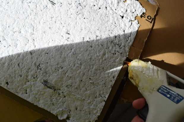 usando pegamento caliente pega el papel a la Plaza delantera (Asegúrese de que usted puede ver la escritura) entonces pegamento caliente el respaldo en