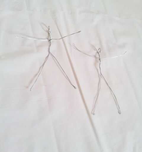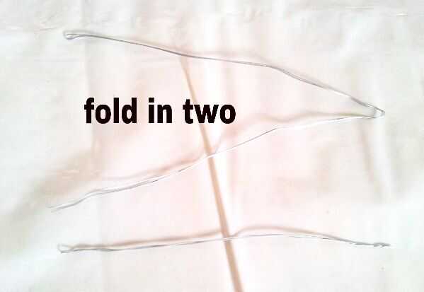Cortar 2 alambres. Uno es 36" los otros 16". Doblar cada uno por la mitad y torcer un poco en sí mismo.