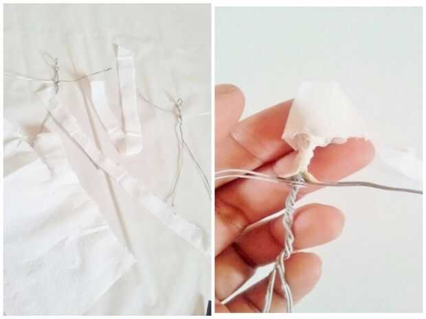 El esqueleto puede ser de cualquier tamaño que quieras pero ten en cuenta el tamaño de la servilleta de papel para la longitud del vestido.