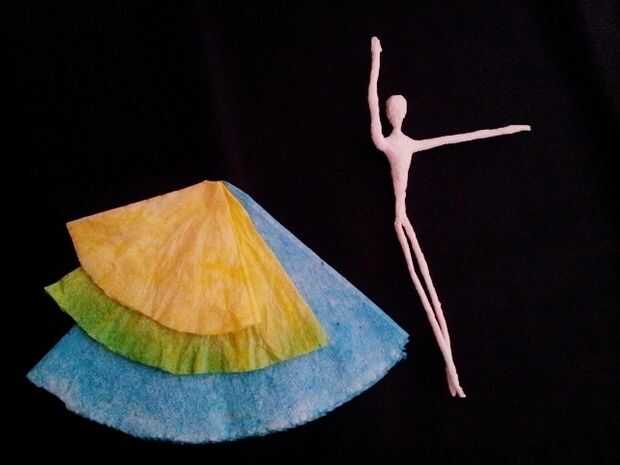 Tomar 3 capas de gasa en diferentes colores. Corte longitudes de la falda.