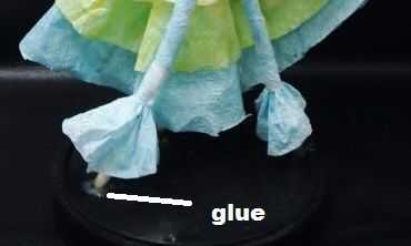 Pegamento caliente los 2 pies de la cancion. Asegúrese de apoyar mientras se mantenga a la bailarina en posición y le pegue abajo. Doble el brazo de la cancion para que puede pegar el brazo a la cintura de la bailarina. Ahora es como un trípode. Levante la bailarina 's otra pierna de una patada alta.