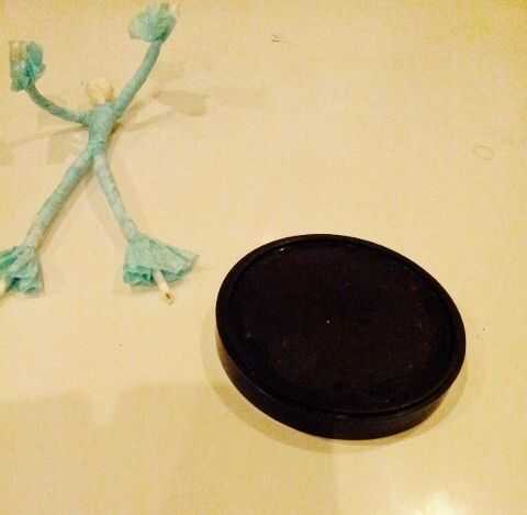 En primer lugar cortar un círculo de madera y pintarlo de negro. También puede saltarse este paso y usar una tapa negra.