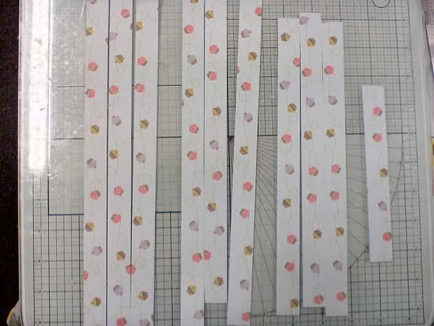Todas las tiras son 3/4 pulgada de ancho. Cortar con un cuchillo y la regla de máxima precisión - tijeras va a hacer, pero es difícil conseguir una línea recta.