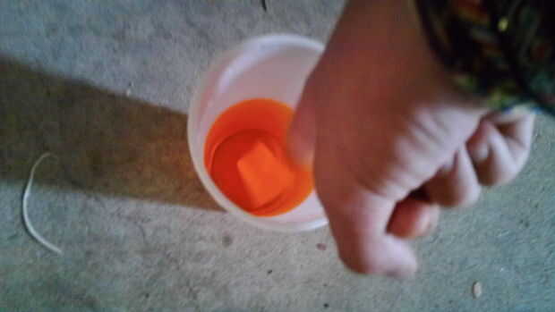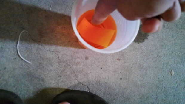 Inserte el pedazo de papel en el tinte remover todo un poco y deje reposar un par de minutos.