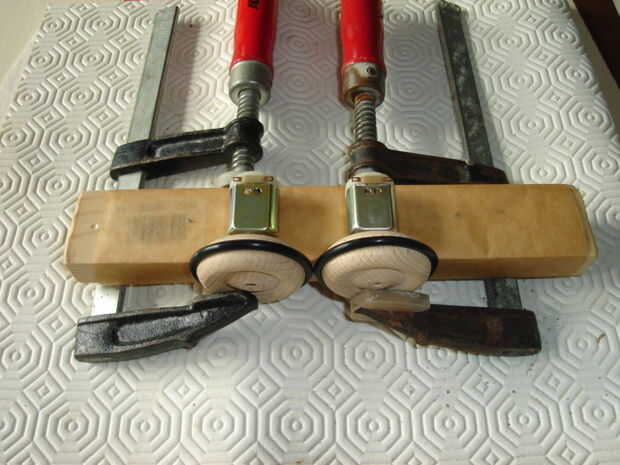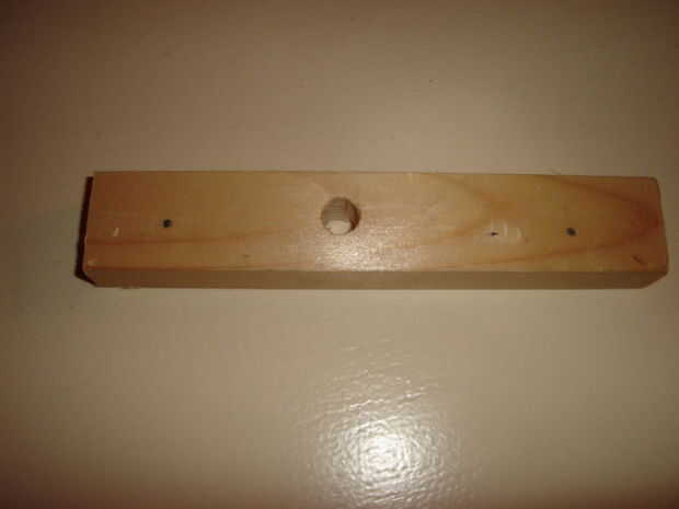 Posteriormente se puede conectar el interruptor de todos modos que desee, pero incluidas en este instructable es una opción que facilita el montaje real para niños construyendo el dispositivo. Se trata de taladrar un agujero de 12 mm en uno de los pedazos de madera, a unos 11 cm de un extremo. Ver la última foto. Usted puede hacer eso en la preparación, pero si tienes una columna taladro configuración disponible, incluso los niños pueden hacer ellos mismos bajo estrecha supervisión.