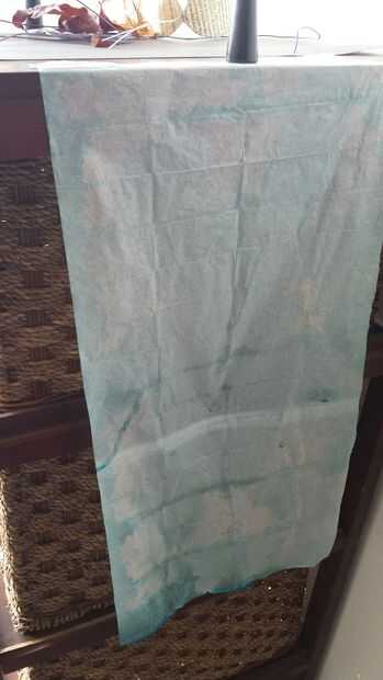 Mientras que sumergir diferentes secciones el pañuelo de papel en diferentes intensidades de azul produciría aproximadamente predeterminados tonos de azul (cuánto tiempo dejaste el papel en conduciría con distintas tonalidades, probablemente-desacreditado más adelante), la manera más eficiente y menos despilfarrador sería tirar lentamente una pieza sumergida de papel de tejido de algún tinte para que las secciones que permanecen sumergidas ya Obtén un tono más oscuro. Sin embargo, no estaba segura lo despacio/rápido debo tirar el papel de tejido, por lo que experimenté un poco con cuánto tiempo debo dejar el papel en el colorante. Esto fue la piedra angular de mi Asunción con cómo crear el efecto de ombre que quería, pero desafortunadamente el tiempo no era un factor prácticamente significativo en intensidad de color. En la misma copa, salí de una hoja completa de papel completamente sumergida como la otra hoja estaba completamente sumergida poco a poco. Ambos tenían poca diferencia en matices. También, mientras que el papel que dejó en el tinte durante 1,5 horas era más oscuro que el papel cruce y sacó inmediatamente, no por mucho. Realista no quería tener que ajustar el papel cada 2 horas para ombre, pero ya que quería encontrar un menos desperdiciador de tiempo alternativa descartar esto de colorante como tinte (no para otros tintes aunque... vea el paso 6).