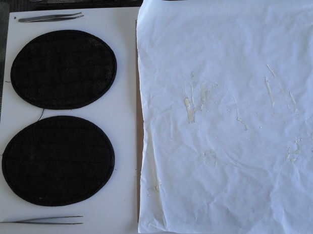 Es tiempo para que su área listo para su proyecto. Comience con el área protegido o resistente al calor (agarraderas etc..) Guardo mis artículos de E-Z water separado de otras herramientas; solo lo mejor para mí. Colocar el olla titulares en-frente a mí, directamente detrás de la cookie de la hoja es un pedazo de cartón cubierto con papel de congelador al cada lado de la hoja de la galleta es un par de pinzas, uno para cada mano, pistola de calor se encuentra hacia el lado que es más fácil para usted.