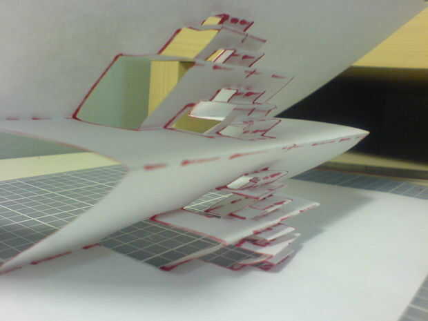 Yo estaba pensando en las cosas y aviones de papel, y si podría diseñar uno mismo, así me ocurrió con esta variante del avión de papel estándar. Yo no encontrar esto en un libro o escuchar acerca de este lugar. Este es mi propio diseño. Sí, es una va