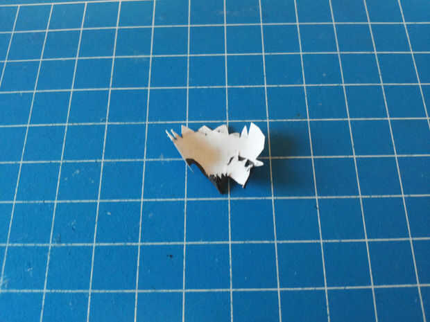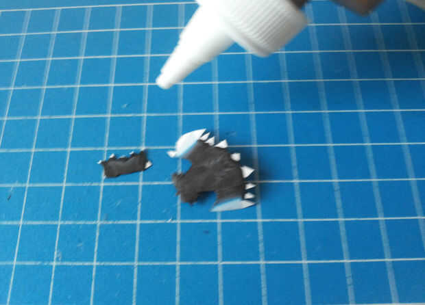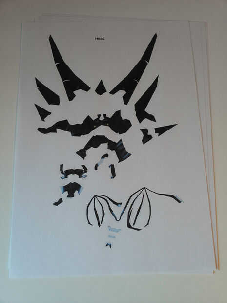 Usted debe comenzar con la parte más pequeña/detallado y es la cabeza (nariz). Trabajar su camino hacia la cola y las alas. Pegar la aleta de la aleta y anillo por anillo. Puede también cortar y pegar directamente una parte a la vez para no perder accidentalmente una parte (pequeña).
