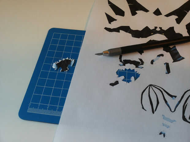 2. Recorta las piezas y usar un marcador negro para ocultar los bordes blancos del papel. Utilice sólo en las partes oscuras!
