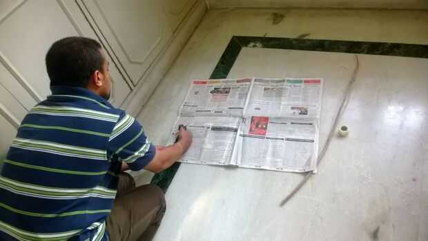 Usos del periódico, respetuoso del medio ambiente; Reutilizar el periódico. Escoba Eco Friendly y cubo de basura ecológico de los periódicos.