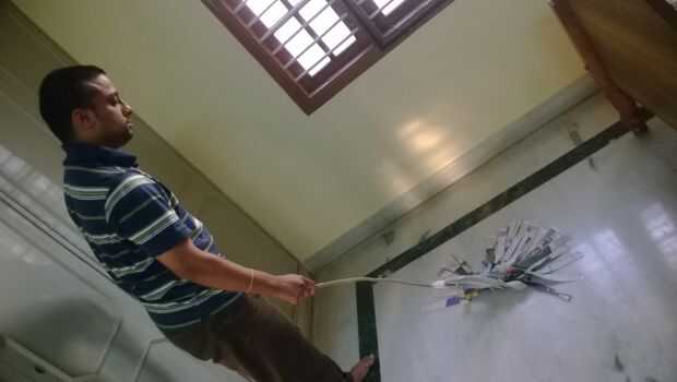 Hola todos, aquí (Mr.Suhasa, estudiante de doctorado en biotecnología, Bangalore, Karnataka, India) muestro un uso innovador de diario de... El periódico se hace a mano convenientemente en cubo de basura para volcar basura en él. Esto evita el uso de