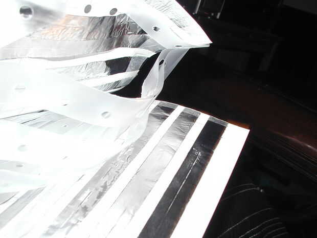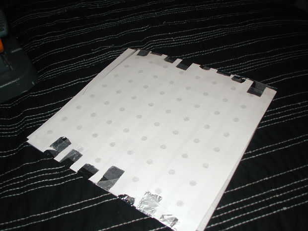 LAF está parado para el laminado de aluminio - en este caso va a utilizar papel de aluminio doméstico que es laminado con cinta de embalaje regular. Es fuerte, durable y rasgar-resistente. Es flexible, conductor, fácilmente cortado, doblado o en form