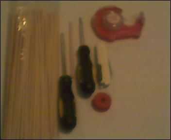 Este es mi primer instructable. Probablemente funcionará mejor si usted lazo en un ventilador mientras está apagado!!!!!! Conseguí esta idea de un libro de cometa que tenía. Espero que les guste.Esto es lo que necesitarás.-En algunos palos de pegamen