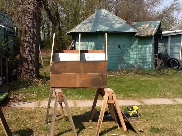 Me mudé a una nueva tienda, que tenía años de los restos de carpintería, por todas partes, necesito espacio para mover mi silla de ruedas alrededor de y no se piense en un espacio desordenado. Así que decidí hacer un cubo de chatarra para poner todos los cortes en, tuve una "hoja" de 3/4 capas, lo digo "Hoja" no fue realmente la hoja 4'x 8' sino 39 "x 6' hoja del palet me dieron donde yo tanto mi torno. Aunque el dibujo muestra el diseño de una hoja completa, si cambias las medidas o pegamento, atornillar o clavar trozos en paneles construir uno, incluso puedes usar una plataforma y rellenar los espacios y plataformas pequeñas para los lados. Así que el punto es este no tienen medidas exactas, recuerde que es un cubo de madera de desecho de madera! Y como se puede ver, un lado había deformado capas. Pude de arreglado pero es un cubo de madera de desecho de madera!