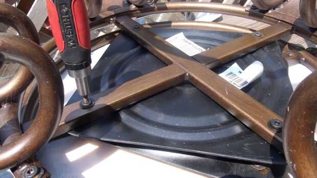 Un vistazo demostró la base fue unida con 4 tornillos torx, que parece bastante fácil! Un par de minutos más tarde tuve una base adornada, una base giratoria para la pila possibilium y desecho un poco