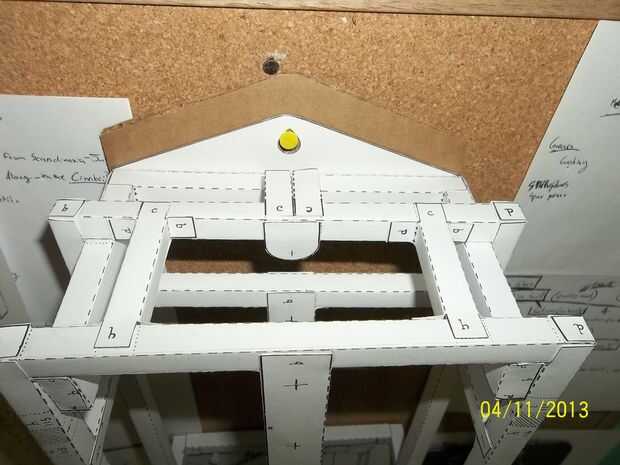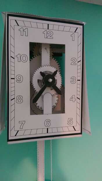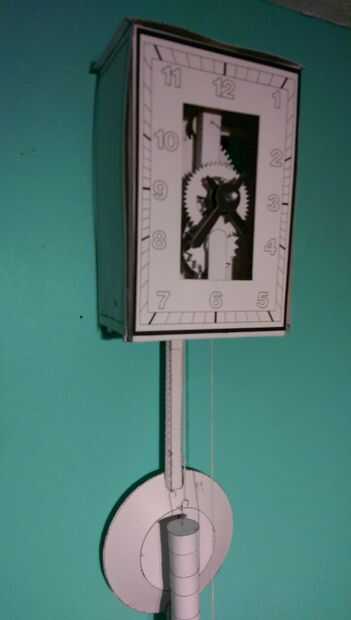 Se trata de un reloj de papel. Este no es mi diseño original. Lo conseguí de un libro de James Smith Rudolph que compré en Amazon.com. El viene con instrucciones y diagramas (diagramas publicadas) y las piezas están impresas en las páginas que son de papel de bolsa grueso. Tienes que cortar el libro para arriba y las piezas de salida luego pegamento ellos luego con algunos tipo de "árbol" (he utilizado alisar clips). Las instrucciones dicen utilizar "látex basada pegamento" pero yo "Pegamento Original Taky de Aleene" y funcionó muy bien.