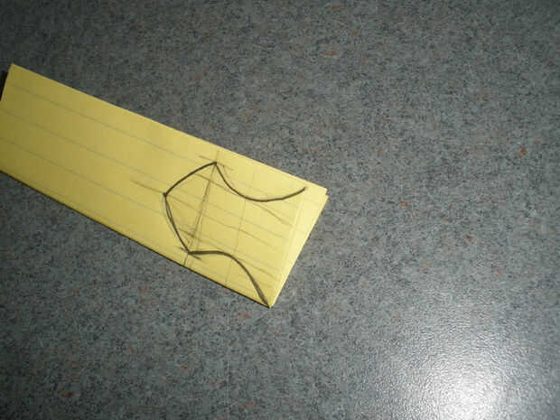 3. Dibuje la forma de corte en a fin de que donde hiciste el primer doblez.