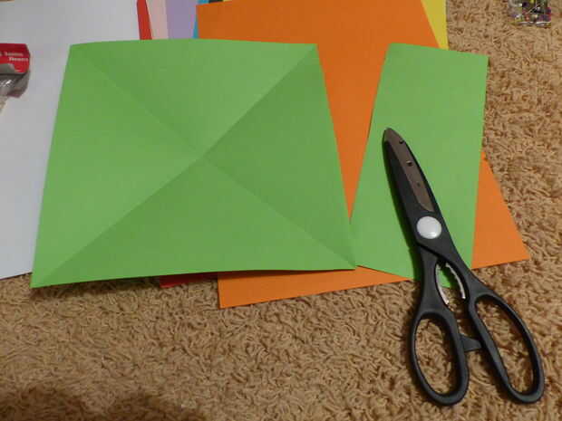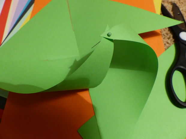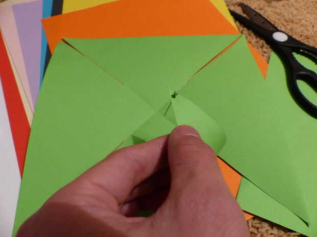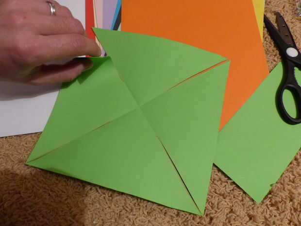 Dobla el papel como se ve en el primer cuadro y tijera de uso para hacer la Plaza.