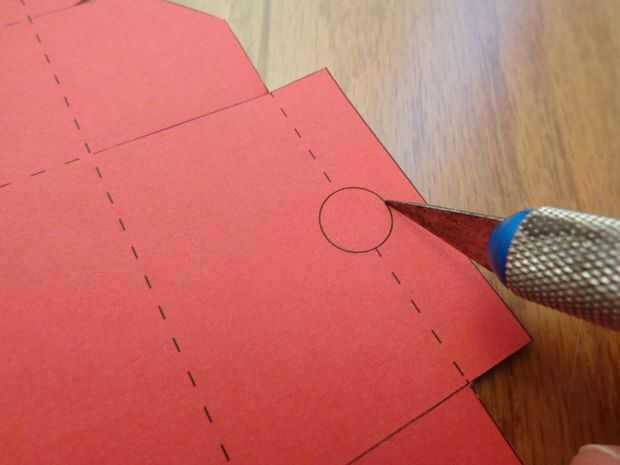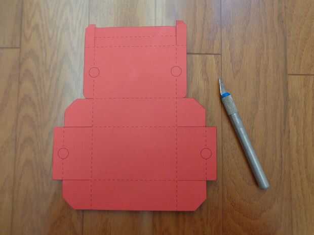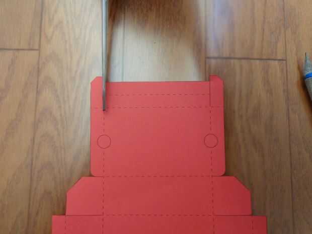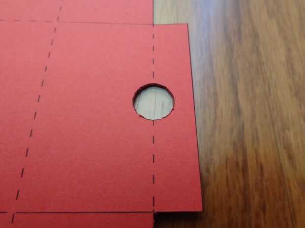Aquí es donde usted tiene una opción: Si desea que su casilla para que las muescas de semicírculo en los lados (que caracterizan como una caja de zapatos), use el cuchillo para recortar todos 4 círculos en el diseño. Si usted no recortar los círculos, sólo será una caja de la tarjeta de regalo normal. Es todo hasta usted!
