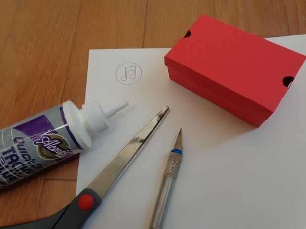 Adición de un logotipo es una divertida manera de ataviar encima de la caja. Si usted está haciendo una mini caja de zapatos, añade un gran efecto para crear una pequeña miniatura. Cuando la impresión de un logotipo, asegúrese de que ninguna de las partes del logotipo son extremadamente cosa, porque eso lo hace difícil de cortar y pegar. En el caso de la caja que acaba de hacer, quiero dar con una tarjeta de regalo de iTunes, por lo que imprimí un esbozo del logo de iTunes. Cortar el círculo externo con tijeras y utiliza un cuchillo para cortar la nota central de la música. Para pegar en, apple pegamento a todos los de la espalda y trate de pegar más cercano al centro de la parte superior de la tapa como sea posible. Después de esto, ¡ listo!