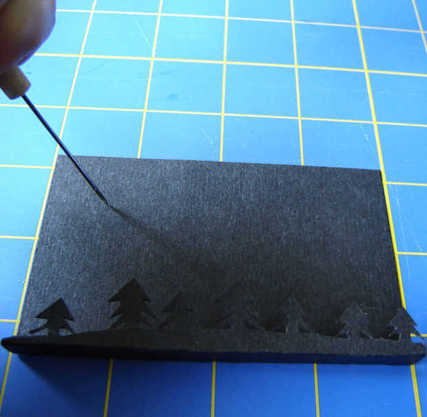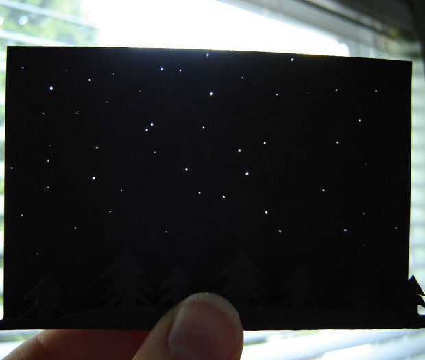 • Encontrar algo agudo y poke agujeros espaciados aleatoriamente en el fondo negro.