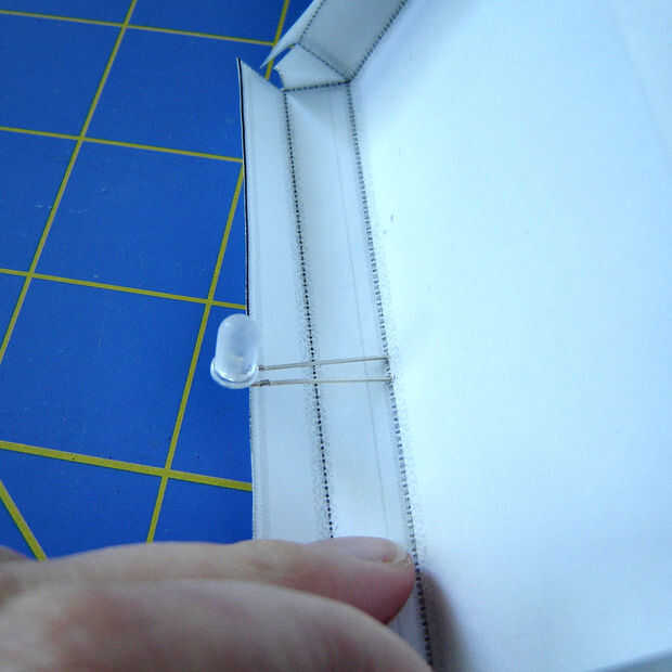 • Alimentación de las piernas del color cambiar LED a través de dos agujeros hiciste antes y los mismos agujeros utilizados por el LED blanco (debe ser la pierna positivo con el positivo y el negativo con el negativo).