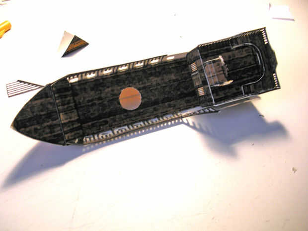 Paso 3: Corte pieza 17 y pegamento para el casco de conexión a la casa de la cubierta. (puede necesitar hacer algunos cortes hacia abajo para que pueda ser incluso)