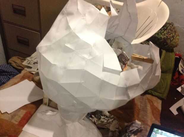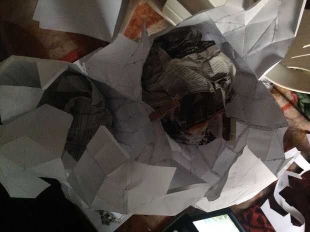En esta etapa te darás cuenta el modelo es un poco hueco y si tocas indelicately 'golpes' se quedarán en el modelo. Para combatir esto, mientras que al mismo tiempo poniendo algunos periódicos viejos a buen uso, relleno el modelo desmenuzado hasta periódicos. Paño podría utilizarse en lugar de periódicos, supongo - en que caso es una gran utilidad para camisetas viejas, viejos calcetines etc Aunque sólo utilicé tela de relleno de la cintura. Eso es porque he diseñado el modelo con una cintura muy pequeña y una línea de cadera 'generosa' - apoyo adicional como tal fue requerido en la cintura si el modelo era esté en posición vertical. Sin embargo, hay otros métodos para dar un modelo de papercraft de esta integridad estructurales de magnitud. Estos incluyen el uso de resina de fibra de vidrio, vidrio líquido, pegamento para madera e.t.c