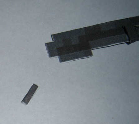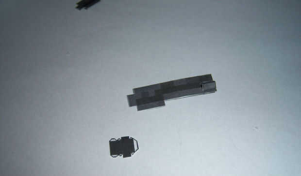 Doble 3 por la mitad y pégalo (no pegamento el cortado a cachitos). Luego tomar el 4s y doblar en triángulos y pegar en 3. A continuación hacer 7 (convertirlo en una caja, espero que usted sabe cómo hacerlo) y pegar 3 justo detrás de uno del 4S (el lado que lo pones en decide qué mano su mini celebrará en). Luego tomar la pieza de itty bitty y doblar por la mitad y pegue. Entonces curva por lo que hace un arco y pegar a 7.