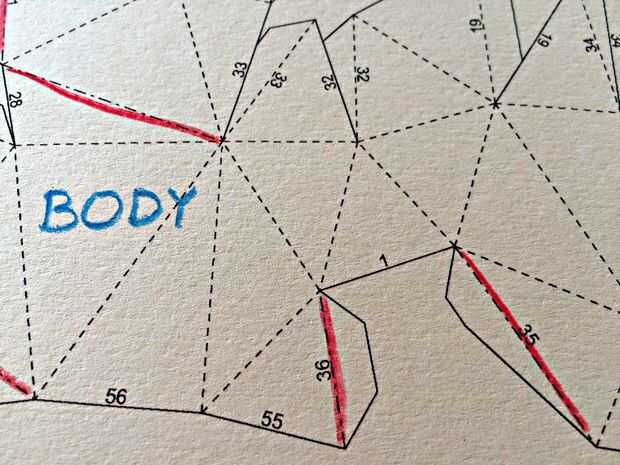 Podría ser una buena idea para marcar los dobleces de valle con un lápiz para que no se confunda cuando estás doblando las piezas después