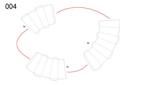 Pegue el extremo con pestañas de 2a hasta el final no fichas de 2b. Pegue el extremo con pestañas de 2b hasta el final no fichas de 2c. Pegamento pestañas final de 2c y al final no fichas de 2a. (cuadro 004)