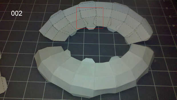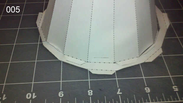 Pegamento de las pestañas pequeñas en el interior de piezas 5a y 5b, luego pegar el más grande dentro de las pestañas (imagen 002).