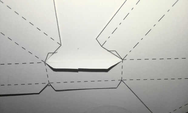 Nota: las líneas de doblez de montaña y Valle en la plantilla son incorrectos. Detallaré cómo doblar las piernas en el siguiente paso.