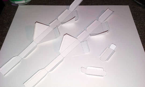 Después de tener todas sus piezas de corte, utilice una regla o borde duro para ayudar a hacer agudos pliegues a lo largo de todas las líneas de puntos.