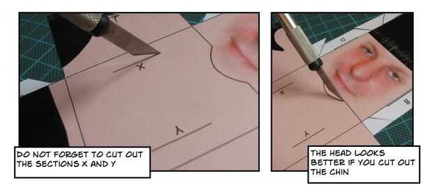 Consejo 2: No olvide cortar las secciones X y Y. Se utilizan para conectar el cuerpo más tarde.