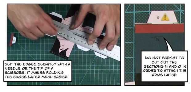 No te olvides de cortar las secciones N y O para unir los brazos más tarde.